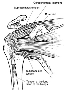 With shoulder arthroscopy, the surgeon makes several small incisions around the shoulder. A small camera and instruments are inserted through the incisions. These instruments are used to cut through the tight portions of the joint capsule.